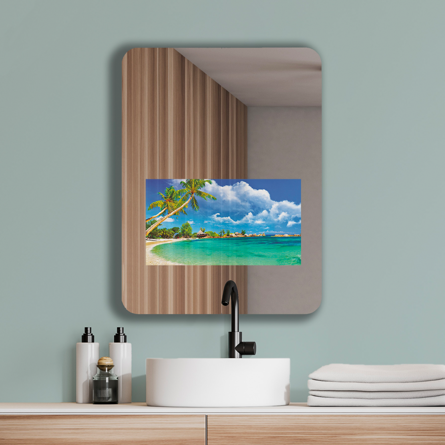 Back to TV In A Box, Vanity Bathroom Mirror TV, 600 x 800mm